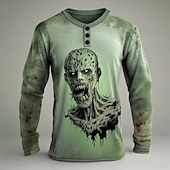 More information about Men's Halloween Zombies Henley Shirt Long Sleeve Fashion Cute Daily Halloween Casual Holiday Fall Spring & Fall Green Henley Henley T-Shirt