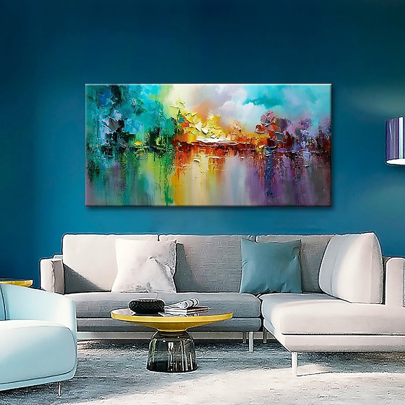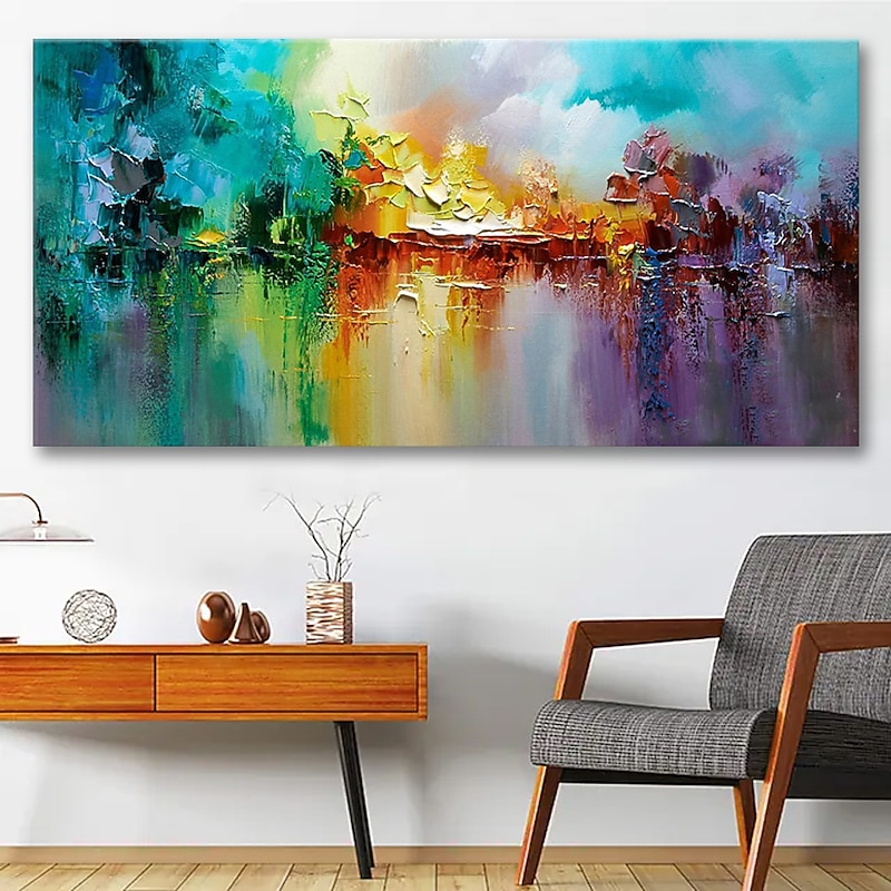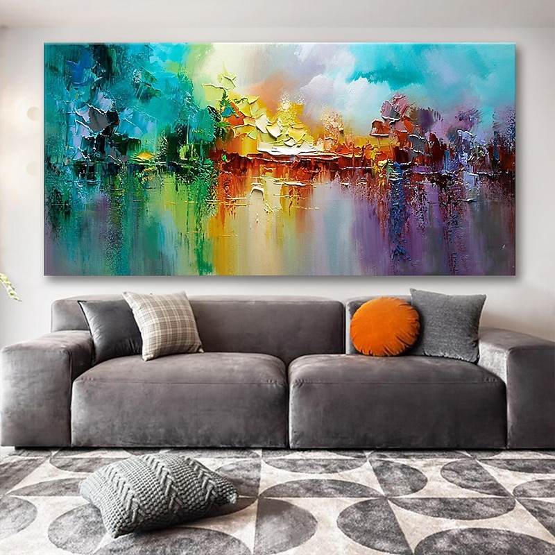 Large Size Oil Painting 100% Handmade Hand Painted Wall Art On Canvas Colorful Lake Abstract Blooming Fireworks Home Decoration Decor Rolled Canvas No Frame Unstretched 1