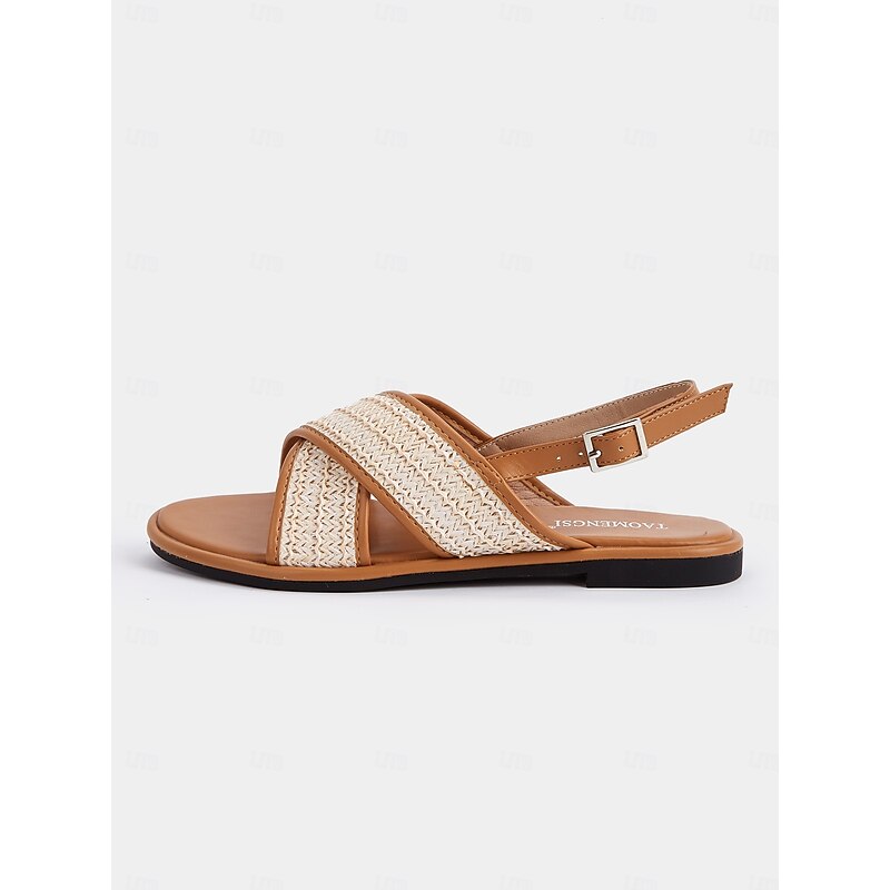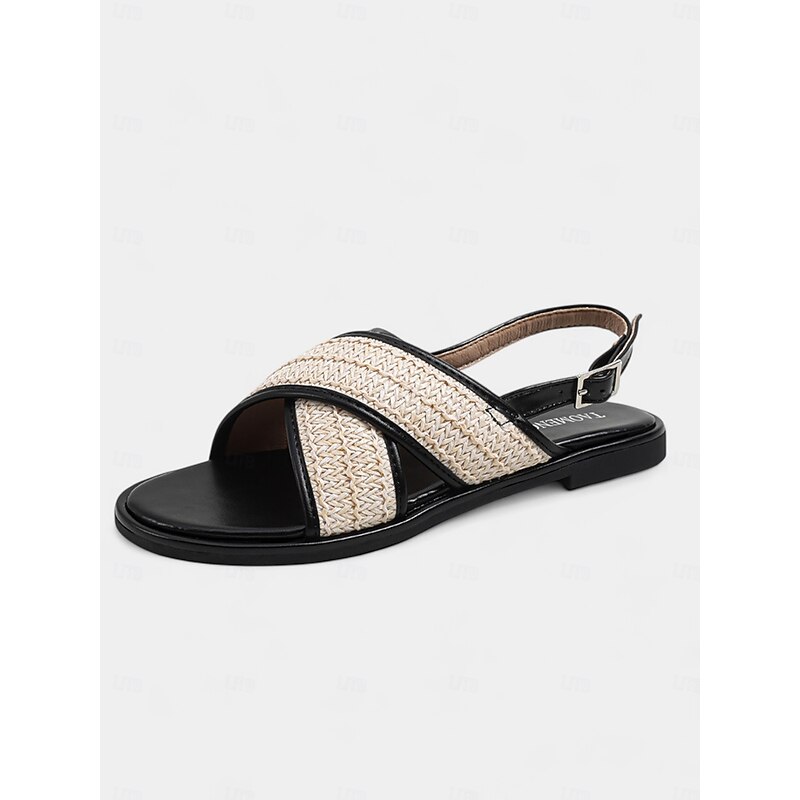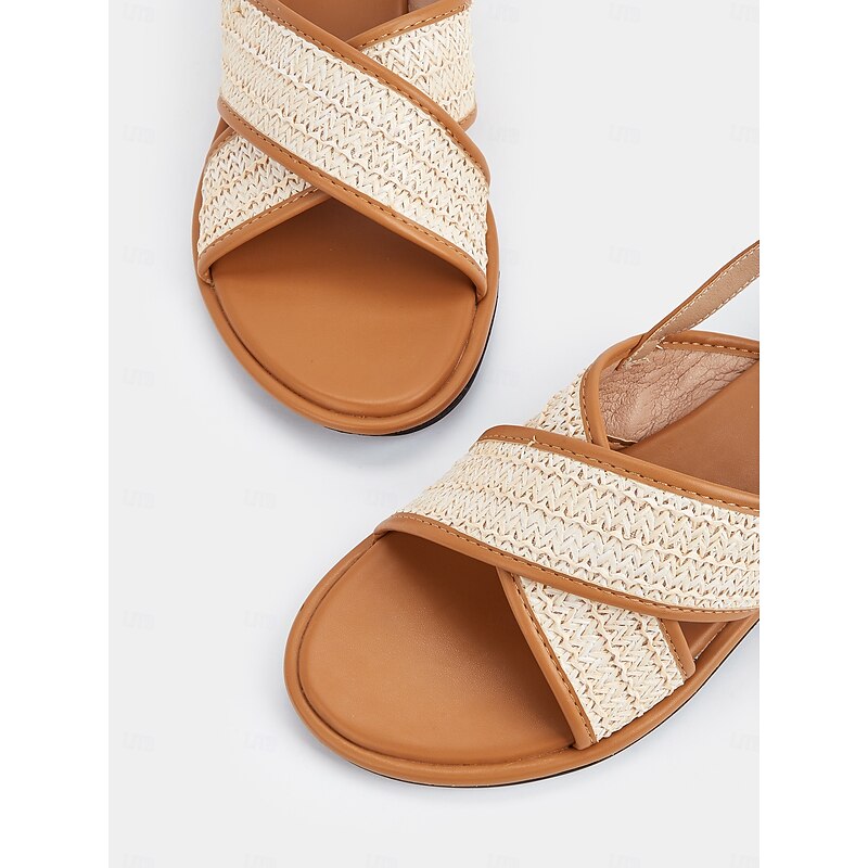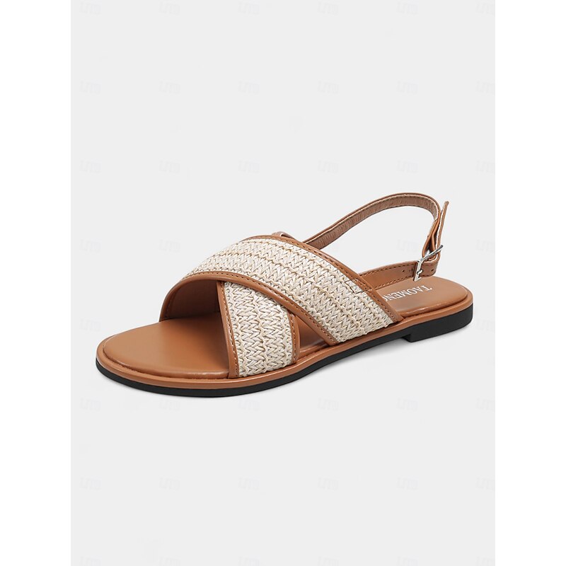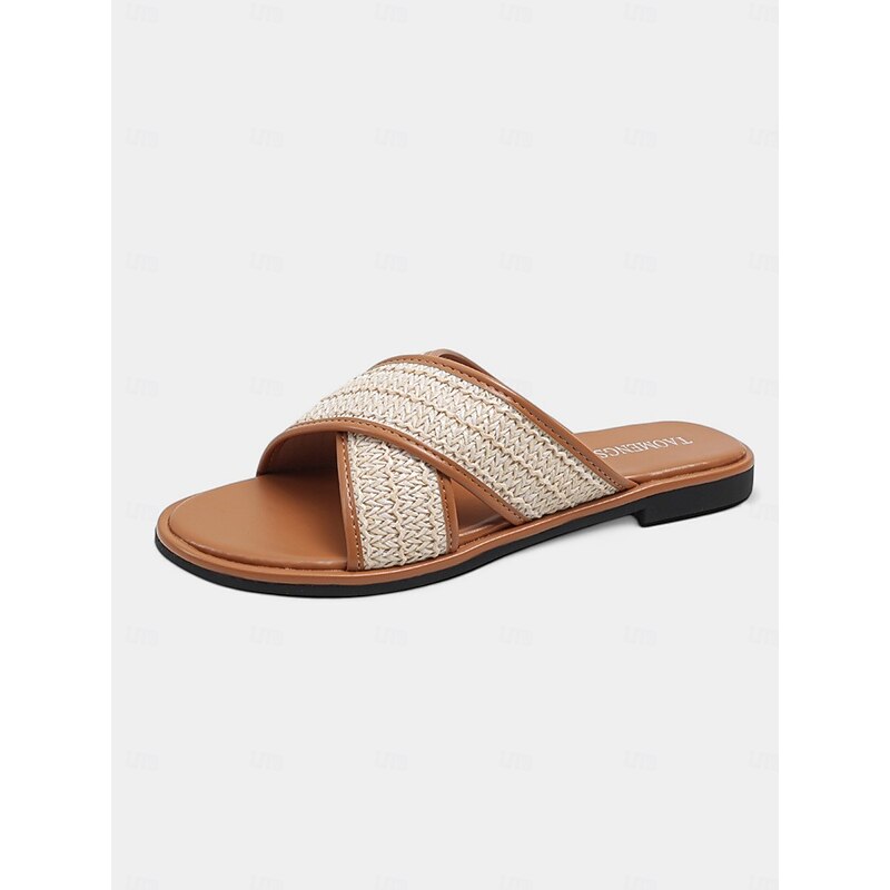 Women's Woven Cross-Strap Flat Sandals – Boho Casual Slides for Summer Strolls & Romantic Daytime Dates 19