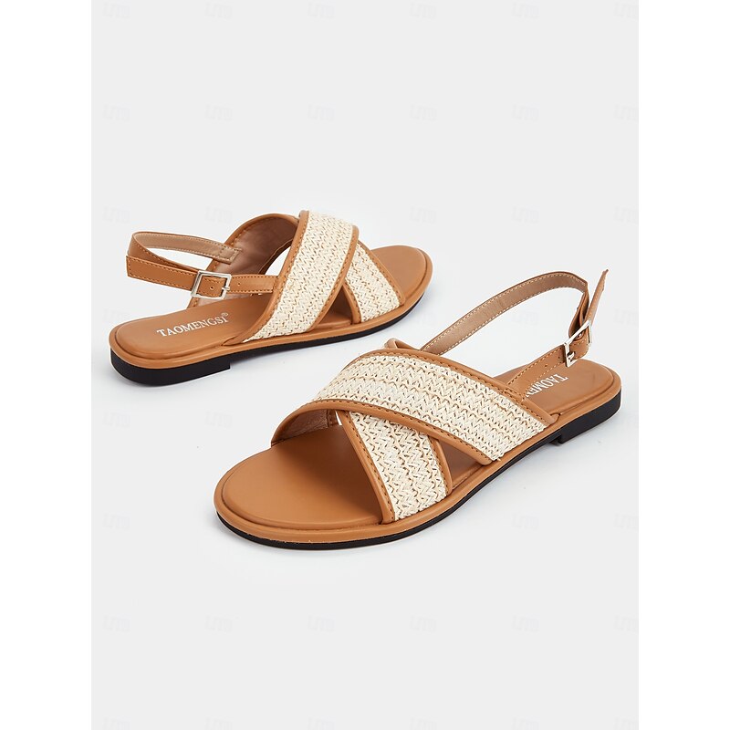Women's Woven Cross-Strap Flat Sandals – Boho Casual Slides for Summer Strolls & Romantic Daytime Dates 21