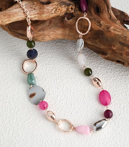 • Unique Design: This 30 in women's necklace features a base crafted from simple and clean golden lines, naturally accentuating the neckline. On the base, beads of varying sizes and materials are arranged irregularly, naturally cascading to create distinct visual layers, adding a pop of color to your look.