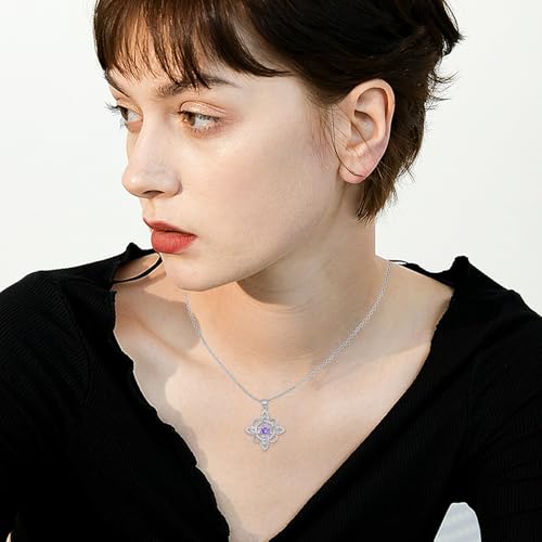 HOT ! 925 Sterling Silver Celtic Knot Necklaces for Women Purple Cubic Zirconia Witches Knot Birthstone Necklace Wicca Irish Jewelry Nudo de Bruja Birthday Gifts for Wife Girlfriend Mom