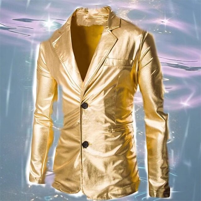 More information about Men's Blazer Business Cocktail Party Wedding Party Vintage Fashion Spring Autumn / Fall Polyester Plain Pocket Buttons Comfortable Single Breasted Blazer Silver Gold