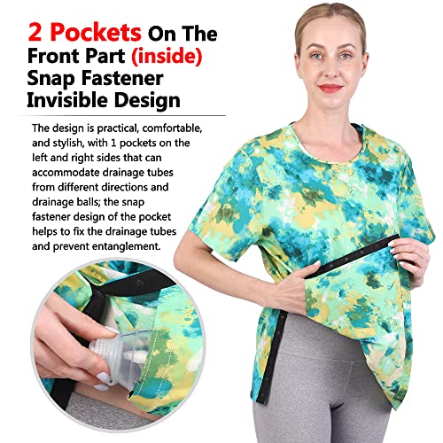 • 4. 2 Pockets on the front part (inside)+snap fastener invisible design: the design is practical, comfortable, and stylish, with one pockets on the left and right sides that can accommodate drainage tubes from different directions and drainage balls; the snap fastener design of the pocket helps to fix the drainage tubes and prevent entanglement.