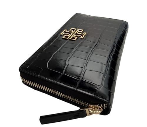 Tory Burch 145345 Britten Embossed Black With Gold Hardware Leather Women's Zip Continental Wallet