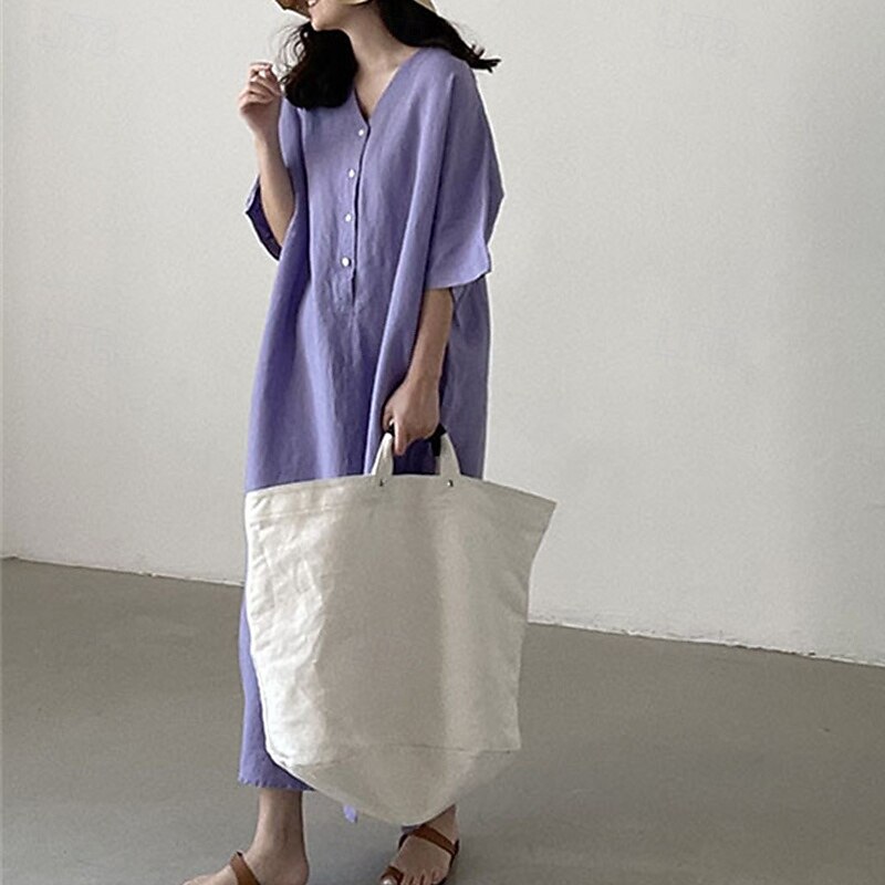 More information about Women's Long Dress Maxi Dress Linen-Inspired Dresses Casual Dress Stylish Ethnic Casual Vacation Daily Date Regular Fit Plain Half Sleeve V Neck Purple Summer Spring