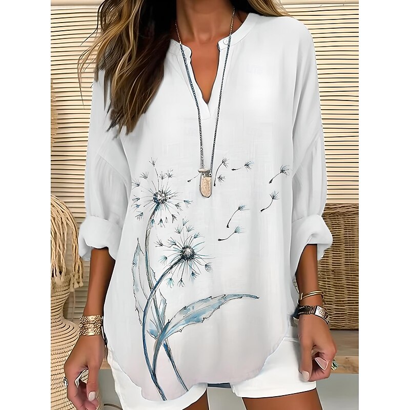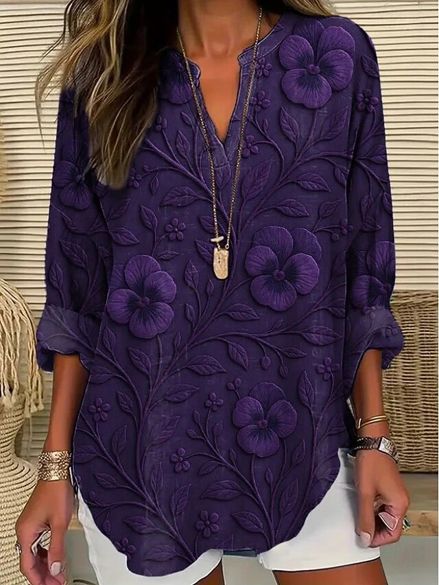 More information about Women's Blouse Tunic V Neck Long Sleeve Boho Casual Summer Tops Floral Graphic Vintage Tropical Regular Tops Daily Wear Print White Pink Purple Fuchsia Gray