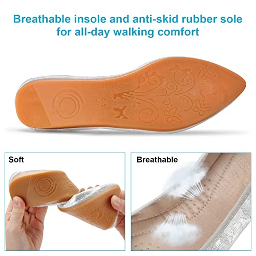 Women's Ballet Flats Rhinestone Soft Wedding Ballerina Shoes Foldable Sparkly Dress Comfort Slip on Flat Shoes 6