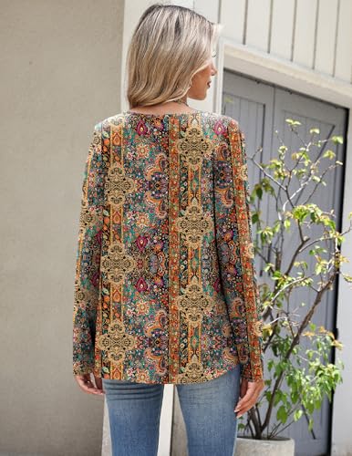 Zeagoo Womens Long Sleeve V Neck Shirts Dressy Casual Tops Vintage Ethnic Blouse Business Work Tunic School Outfits XXL 5