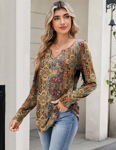 Zeagoo Womens Long Sleeve V Neck Shirts Dressy Casual Tops Vintage Ethnic Blouse Business Work Tunic School Outfits XXL 1