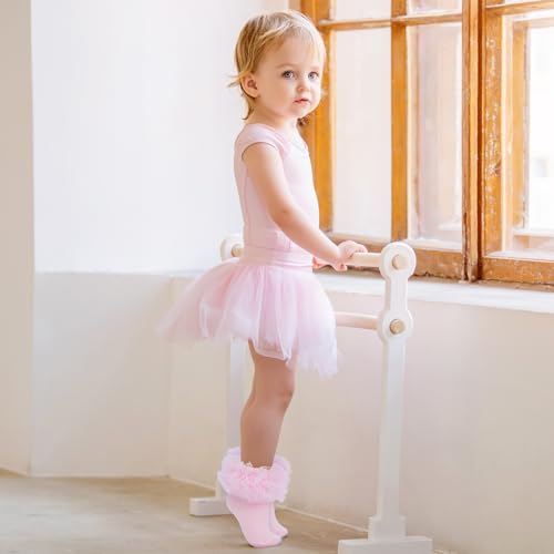 Zando Toddler Girls Ruffle Socks Baby Girls Frilly Lace Princess Dress Crew Socks Stretchy Seamless Fit 1-8 Years 4