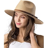 More information about 1 pcs Womens Mens Wide Brim Straw Panama Hat Fedora Summer Beach Sun Hat Straw Hat for Women