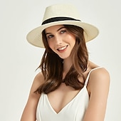 Highlights [Fabric] : Expertly crafted from premium-quality straw, this Panama hat ensures durability and a comfortable fit in warm weather. The lightweight material allows for breathable wear, perfect for sunny days. [Style] : Featuring a classic wide-brimmed Panama design, this hat provides excellent sun protection while exuding a chic and sophisticated look. The neutral palette offers versatility, seamlessly complementing a variety of outfits. [Design Highlights] : Adorned with a sleek black band, this hat includes a decorative bow detail at the side, adding an elegant touch to its boho and Nordic style influences. The timeless design ensures it remains a staple accessory for years to come. [Occasions] : Ideal for spring and summer holiday outings, this straw hat is perfect for both casual and formal occasions. Whether it's a beach getaway, a garden party, or a leisurely stroll, it promises to enhance your outdoor ensemble with style. [Size] : Available in one size, this hat is designed to accommodate most head sizes comfortably, making it a versatile and practical choice for any wardrobe.