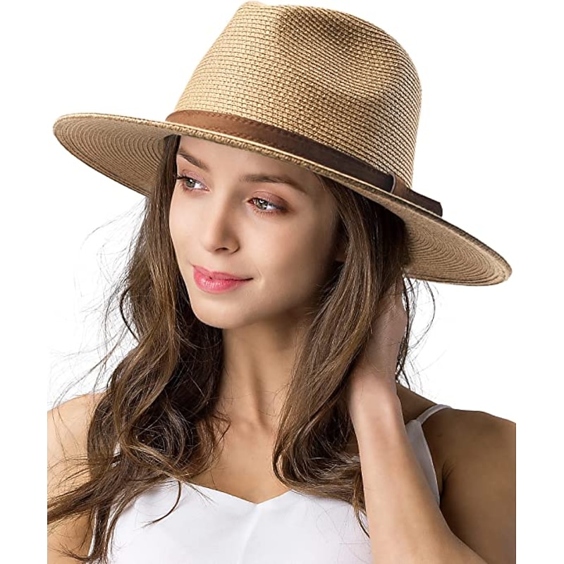 1 pcs Womens Mens Wide Brim Straw Panama Hat Fedora Summer Beach Sun Hat  Straw Hat for Women 6