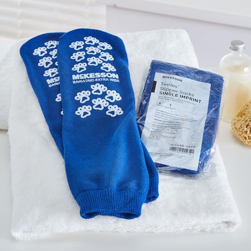 HOT ! McKesson Slipper Socks, Non-Slip Grip Socks, Royal Blue, Bariatric, Adult Shoe 12+, Extra Wide, 3 Pair