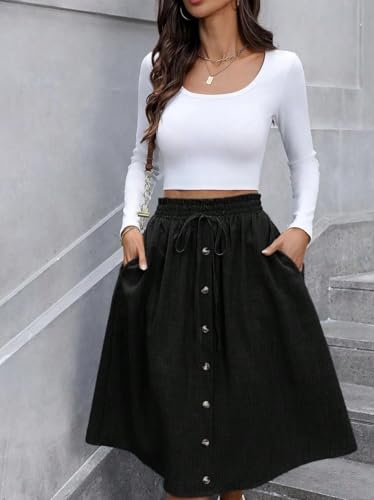 - Pocket, Button Front, Paperbag Waist / Midi / Casual / Plain / High Waist / Unlined / Polyester / Woven Fabric / Black / No / Daily / Loose