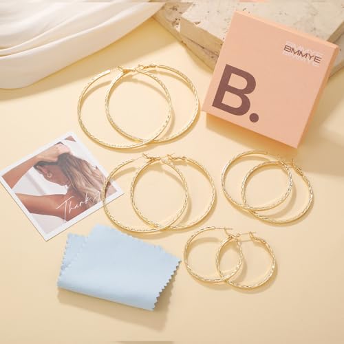HOT ! BMMYE Gold Hoop Earrings for Women Lightweight 14K Gold Plated Earrings Hypoallergenic Earrings Big Hoop Earrings for Women 40/50/60/70MM
