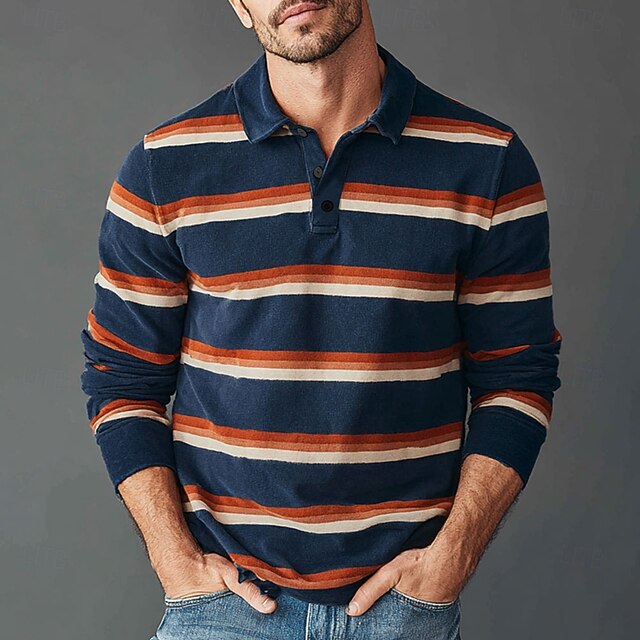 More information about Men's Horizontal Stripes Rugby Polo Long Sleeve Polo Shirts Collared Shirts Sportswear Casual School Outdoor Athleisure 3D Print Spring Fall Winter Yellow Blue Purple