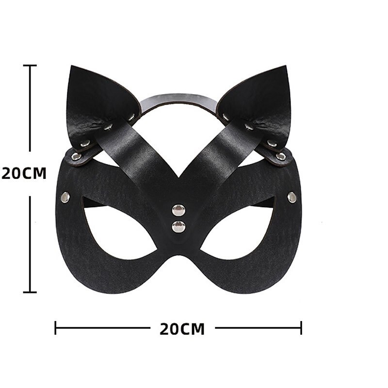 Highlights [Product Highlights] [Fabric] : Crafted from high-quality PU leather, this punk and gothic mask offers a durable and sleek finish. The solid black color enhances its bold and enigmatic appeal, making it perfect for mysterious occasions. [Fit] : Designed to cater to both men and women, this one-size mask provides a comfortable and adjustable fit suitable for most adults. The lightweight construction ensures that it is easy to wear for extended periods without discomfort. [Design Highlights] : The mask features an edgy and sleek design with metal rivet details that add a rugged, playful touch. The cat-inspired character brings an intriguing allure to the ensemble, while the inclusion of a fine gold chain necklace and statement hoop earrings completes the dramatic look. [Occasions] : Ideal for Halloween, masquerade balls, and carnival events, this mask is perfect for those wanting to make a striking impression. Whether attending a themed party or a costume event, this mask provides a bold, standout statement. [Size] : Available in one-size, this mask is designed to fit most adults comfortably, making it accessible for a wide range of users looking to explore a punk and gothic aesthetic.