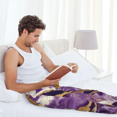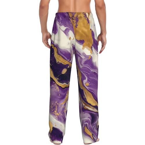 Novastar Mens Pajama Pants Bottoms with Pockets- Purple Gold Marble Swirls plush Men Pj Pants, Comfy Men Lounge Pants