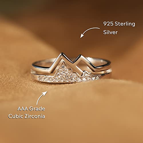 • COMFORTABLE & DURABLE: Our mountain ring has no sharp edges and offers a smooth, comfortable fit. Crafted with thick white gold electroplating and secure prongs, it resists fading and discoloration, and keeps every stone firmly in place—perfect for daily wear.