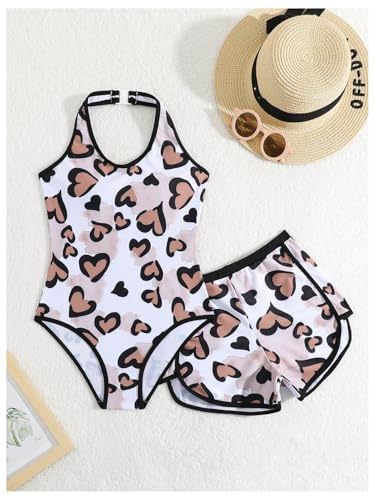 GORGLITTER Girl's Cute Heart Print One Piece Swimsuit with Cover Up Shorts Bathing Suit 3