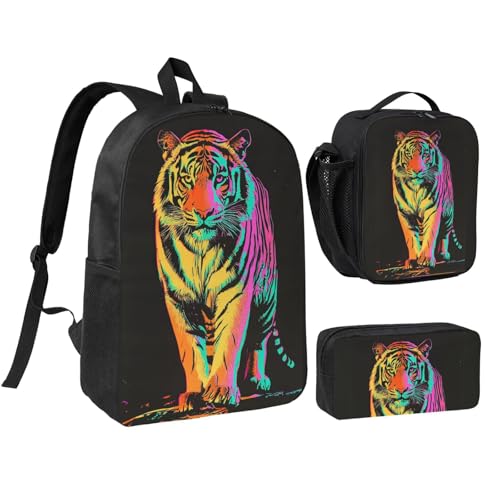 HOT ! Tiger Backpacks 3 Pcs Minimalist Backpack for Men and Women with Fun Graphic Cartoon Print for Camping Touring
