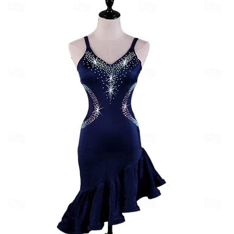 HOT ! Shoulder Straps Latin Competition Costumes for Women Salsa Performance Dancing Outfit Cha Cha Ballroom Dance Dresses