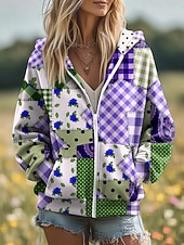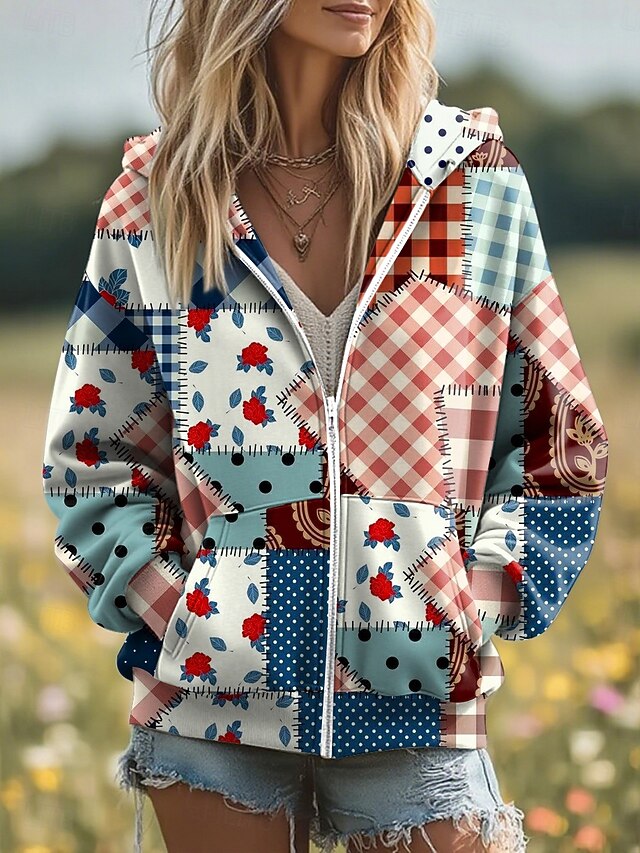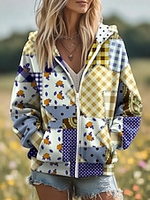 More information about Women's 3D Print Vintage Boho Hoodie Patchwork Hoodie Sweatshirt Floral Zip Up Casual Long Sleeve Hooded Street Dailywear Patchwork Zipper Pocket Yellow Pink Purple Dark Blue Light Blue Spring Fall