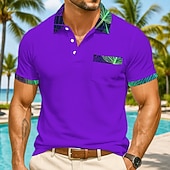 More information about Men's Cotton Blend Polo Shirt Golf Shirt Casual Holiday Lapel Short Sleeve Fashion Basic Leaf Patchwork Pocket Summer Regular Fit Black White Purple Turquoise Cotton Blend Polo Shirt