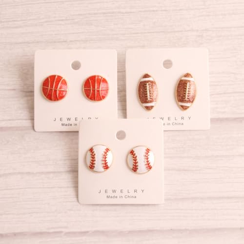 HOT ! ONLYJUMP Rhinestone Sports Ball Stud Earrings for Women Basketball Volleyball Baseball Soccer Football Rugby Earrings Silver Plated Cubic Zirconia Crystal Stud Player Fan Gifts Souvenirs