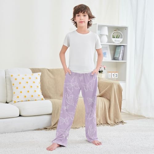 Purple Butterfly Boys Pants Boys Athletic Pants Long Pant for Boywith Pockets Wide-Leg Size 6-14Y 6