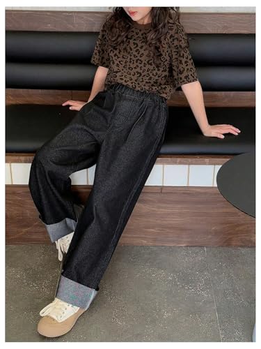 Girl's Leopard T Shirts Short Sleeve Crew Neck Graphic Tees Vintage Summer Tops 2