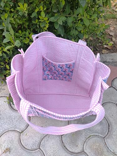 More information about Large Size Indian Handmade Cotton Quilted Tote Bag Decorative Block Print Shoulder Bag Beautiful Women Travel Bag Vintage Floral Print Weekender Bags With Fringe