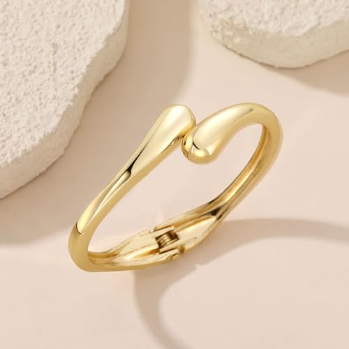 • ✨Gold Bangles for Women: Features a convenient hinge mechanism for easy one-handed wear, paired with a sophisticated thick cuff design. This minimalist yet chunky gold bangle elevates any outfit, from casual sweaters to formal wear, offering timeless light luxury style.