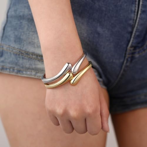 • ✨Cuff Bracelets for Women: Crafted from high-quality, lead-free and nickel-free zinc alloy with durable gold plating. Features a high-polished finish for lasting shine and vibrant color, ensuring comfortable wear for sensitive skin without fading or tarnishing.