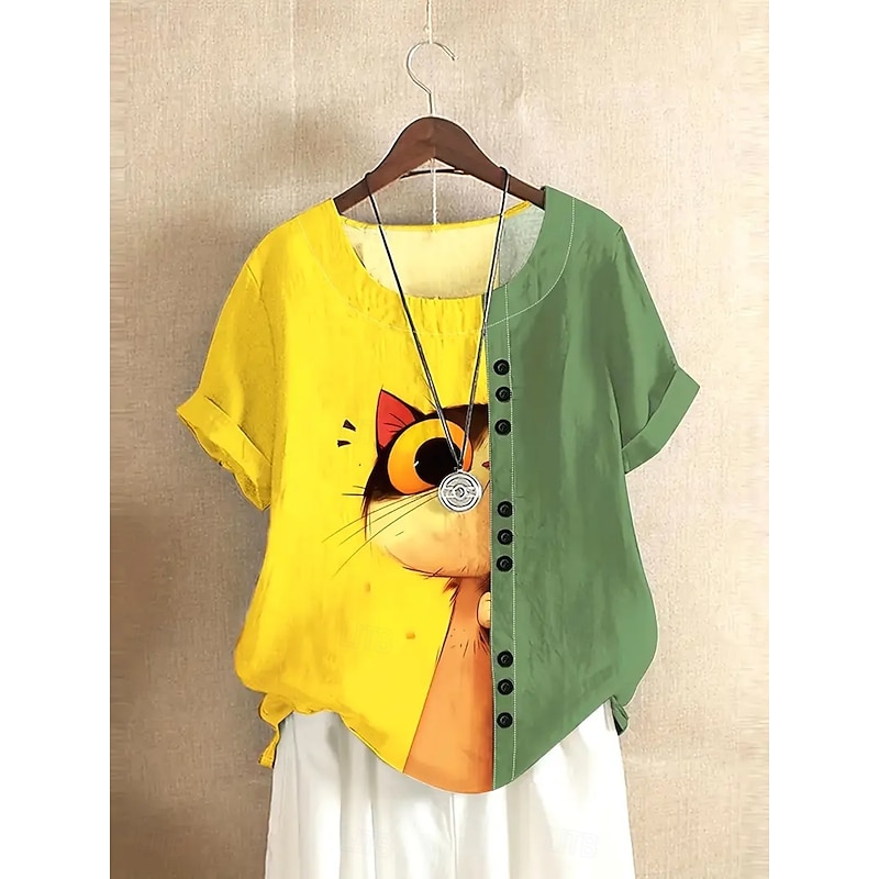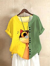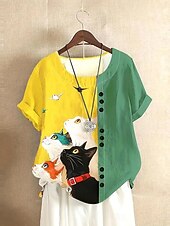 More information about Women's Blouse Graphic Animal Vintage Tropical Stylish Short Sleeve Regular Tops Holiday Buttons Print Yellow Green Beige Gray Summer