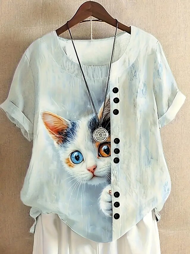 HOT ! Women's Blouse Graphic Animal Vintage Tropical Stylish Short Sleeve Regular Tops Holiday Buttons Print Yellow Green Beige Gray Summer