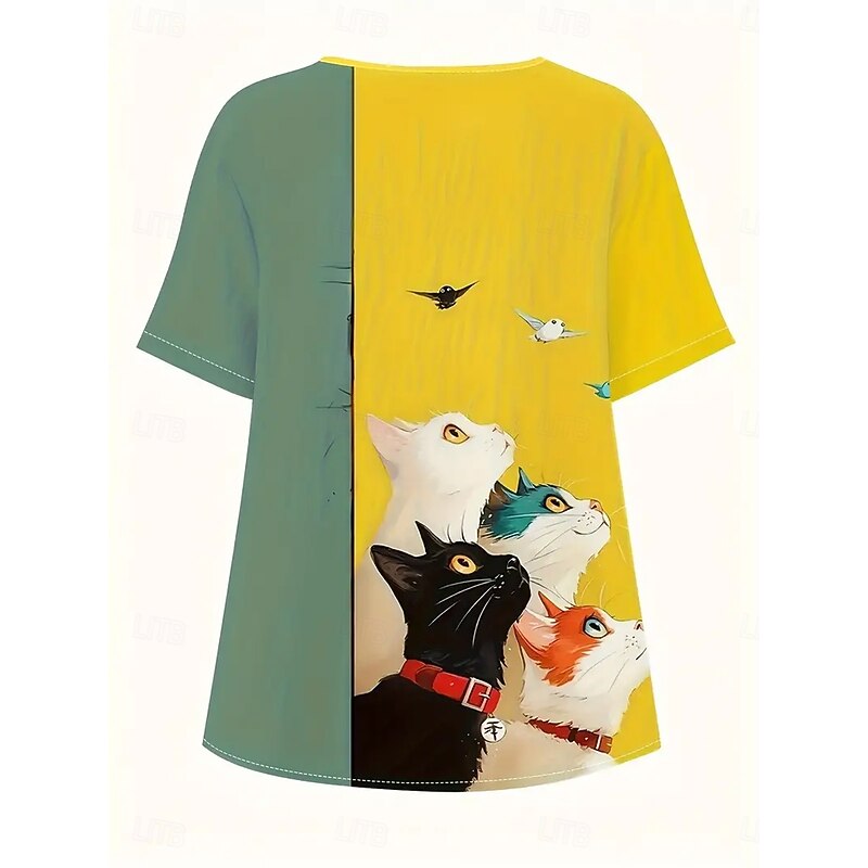 Women's Blouse Graphic Animal Vintage Tropical Stylish Short Sleeve Regular Tops Holiday Buttons Print Yellow Green Beige Gray Summer 5