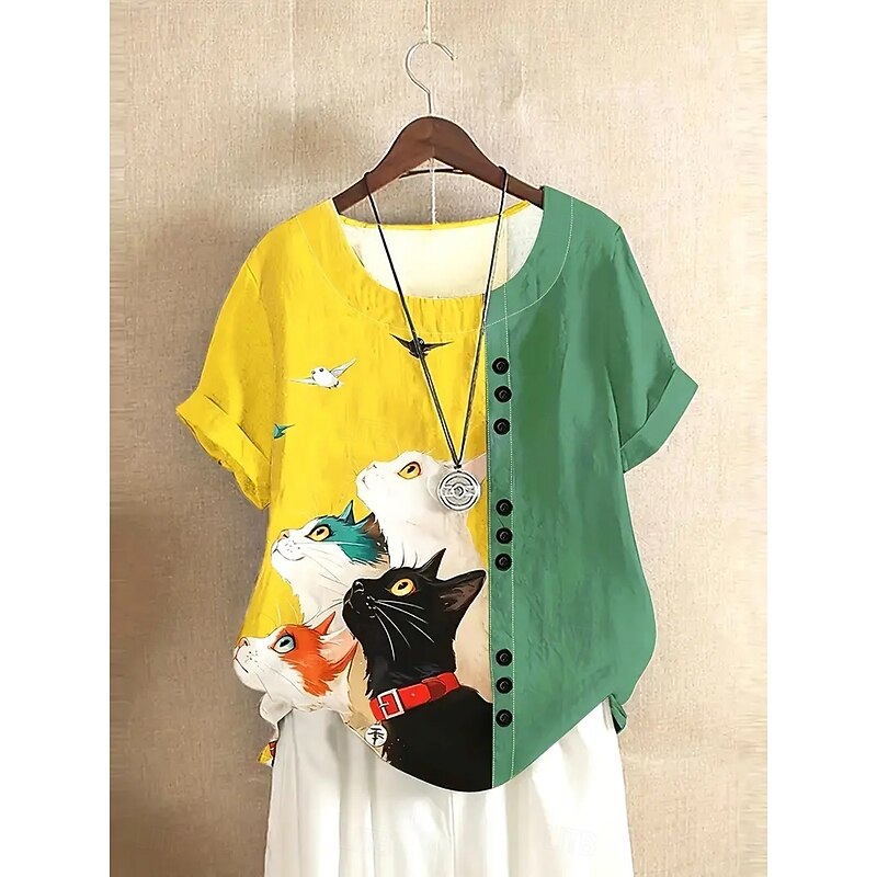 Women's Blouse Graphic Animal Vintage Tropical Stylish Short Sleeve Regular Tops Holiday Buttons Print Yellow Green Beige Gray Summer 11