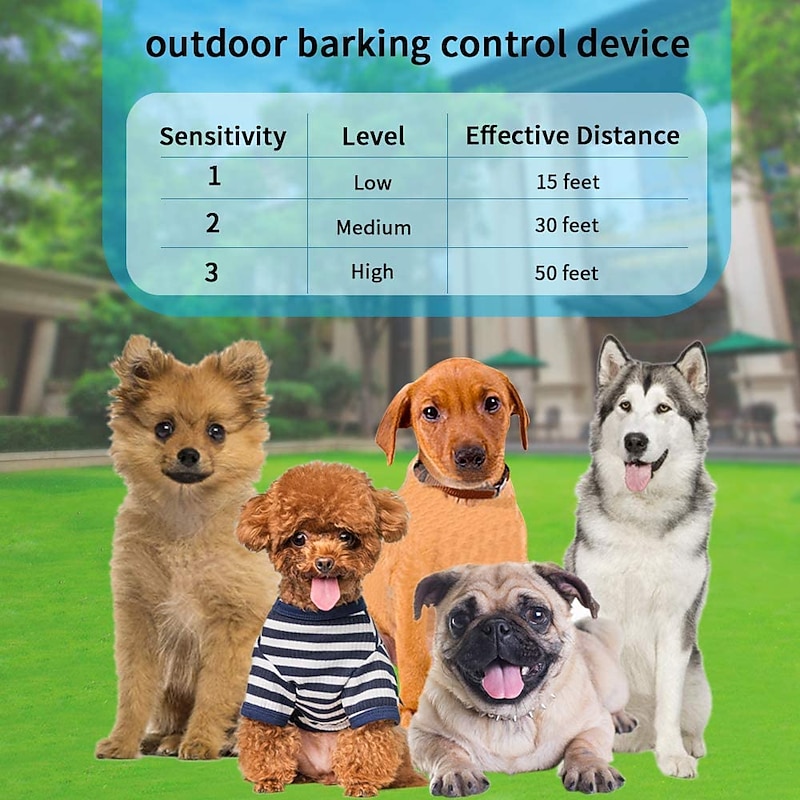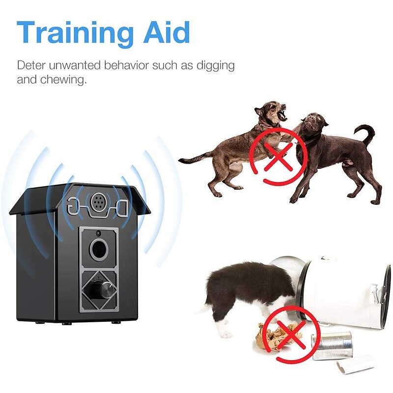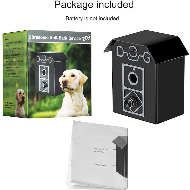 Highlights Especially design for outdoor use. Our Ultrasonic Outdoor Anti-Bark Controller is made of ABS plastic, durable & waterproof. So you don't worry about the rainy day. The ultrasonic frequency is 100% safe & harmless to your pet dogs and completely inaudible to human ears. When the Outdoor Bark Control is within a range of barking dog, the internal microphone picks up the sound and it will be automatically activated. The Outdoor Bark Control will emit an ultrasonic sound to deter unwanted barking. Great for training your dog, your neighbor's dog & even multiple dogs. Use ultrasonic dog anti barking device to stop barking, to train some bad barking behaviors out of dog. Effective AND adorable. Black color allows it to completely blend into outdoor settings instead of standing out and showing dirt and discoloration! Tips: In order to ensure the normal use of the dog trainer, please use it after charging. Please unplug the power supply in time after charging.