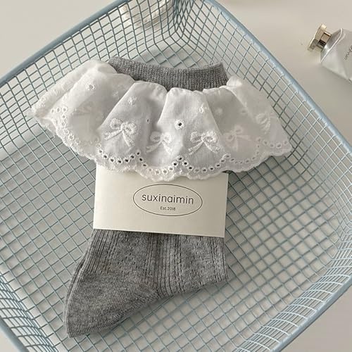 Snycler 4 Pairs Women Ruffle Ankle Socks,Adult Double Lace Turn Cuff Cotton Frilly Dress Socks Cute Bobby Sock with Ruffles