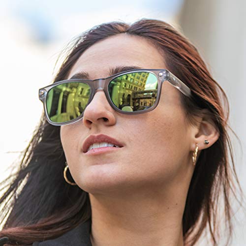 More information about Men's Polarized Leonard Rectangle Sunglasses 100% UV Protected Matte Dark Grey Purple Mirror