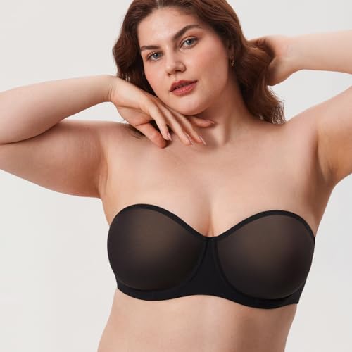 More information about DELIMIRA Women's Cosnufy Strapless Bra Sheer Mesh Plus Size Unlined Underwire Bras