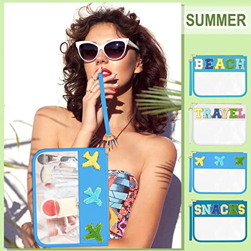Remerry 4 Pack Chenille Letter Bag Clear Monogram Cosmetic Makeup Bag Travel Snack Beach Stuff Patch Pouch Preppy Gifts for Women Girls 4