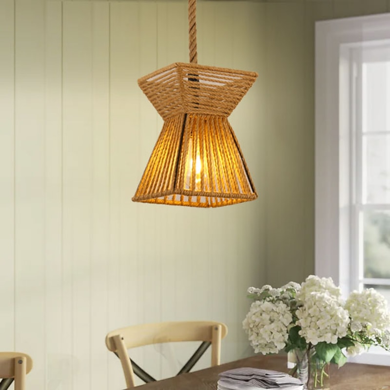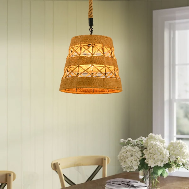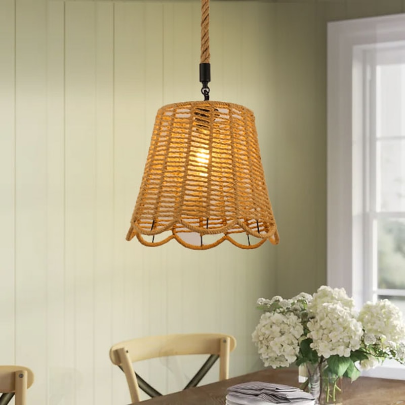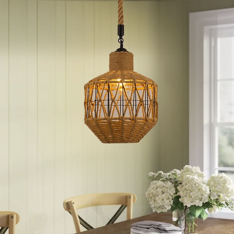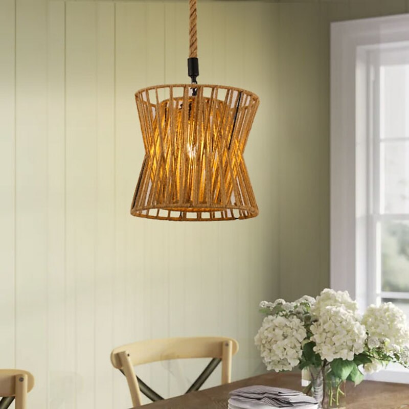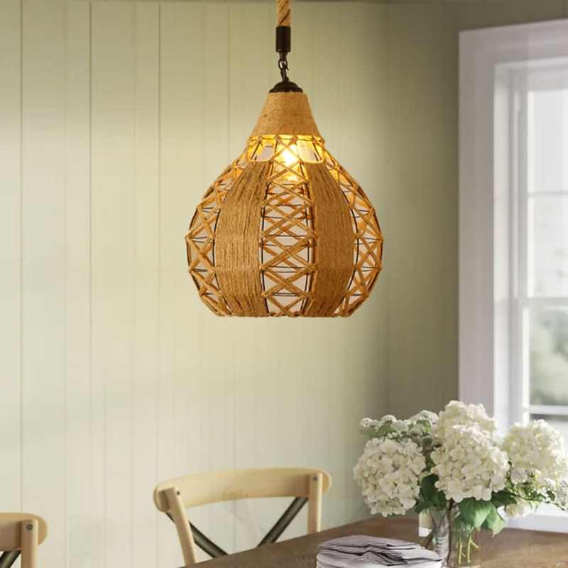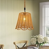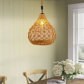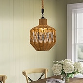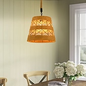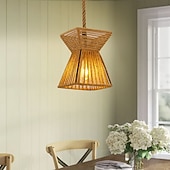 LED Pendant Light Woven Chandelier lighting  Basket Lamp Shade Light Fixtures Ceiling Light Hanging for Patio Hallway Kitchen Island Bedroom Dining Room 1
