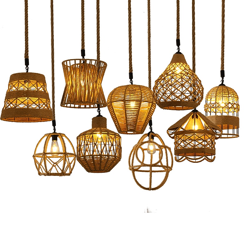 LED Pendant Light Woven Chandelier lighting  Basket Lamp Shade Light Fixtures Ceiling Light Hanging for Patio Hallway Kitchen Island Bedroom Dining Room 31