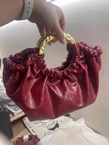 More information about Golden Handle Purse Small Shoulder Bag for Women Ruched Faux Leather Crossbody Bag With Adjustable Strap