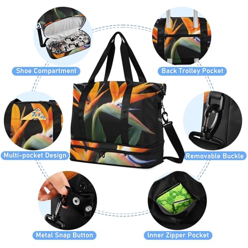 Travel Duffel Gym Sports Luggage Bag Expandable Large Capacity Strelitzia Reginae Flowers Sports Bag for Women and Men