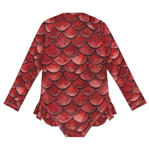 More information about ALAZA Red Dragon Scale Animal Girls One Piece Swimsuit Long Sleeve Rashguard Swimsuit UV 50+ Swimwear Zip